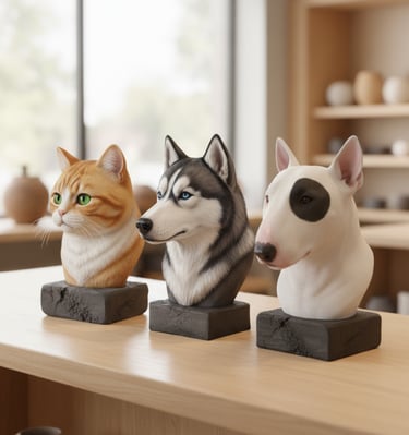 En Plásticos PLG, creamos urnas personalizadas y bustos de mascotas que honran la vida con elegancia y respeto, ofreciendo un homenaje duradero a sus seres queridos.